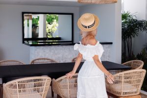 - Design modern sau rustic: În funcție de stilul dorit, poți alege mobilier cu un design modern, minimalist sau rustic, care să se potrivească cu restul decorului exterior. De exemplu, o canapea din lemn cu perne impermeabile poate adăuga un stil rustic, în timp ce un set de mese și scaune din metal cu țesături moderne poate crea un aer contemporan.
